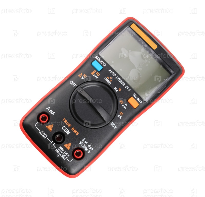 Черный цифровой мультиметр на белом фоне в сухой день