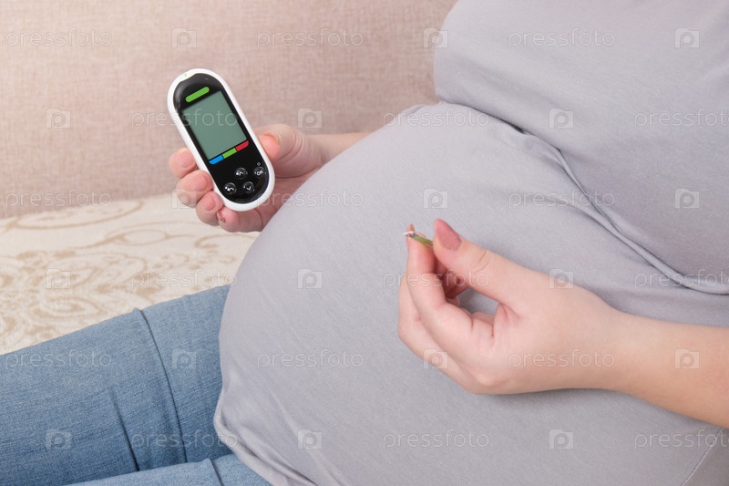 Беременная женщина с глюкометром и ланцетом