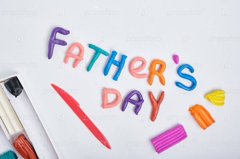 Надпись день отца из пластилина на сером фоне