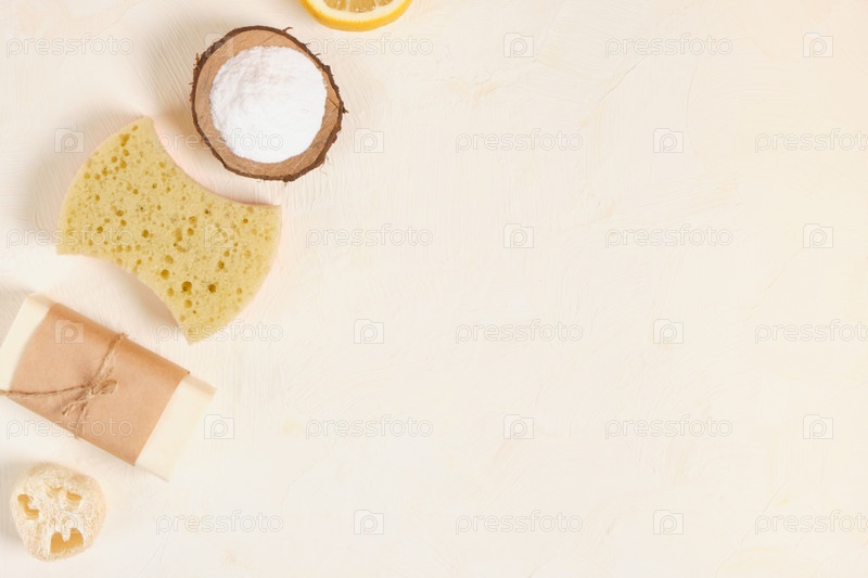 Лимон, люффа, мыло и пищевая сода для домашнего хозяйства