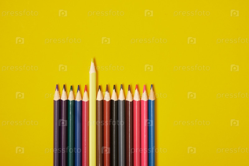 Цветные карандаши на желтом фоне вид сверху