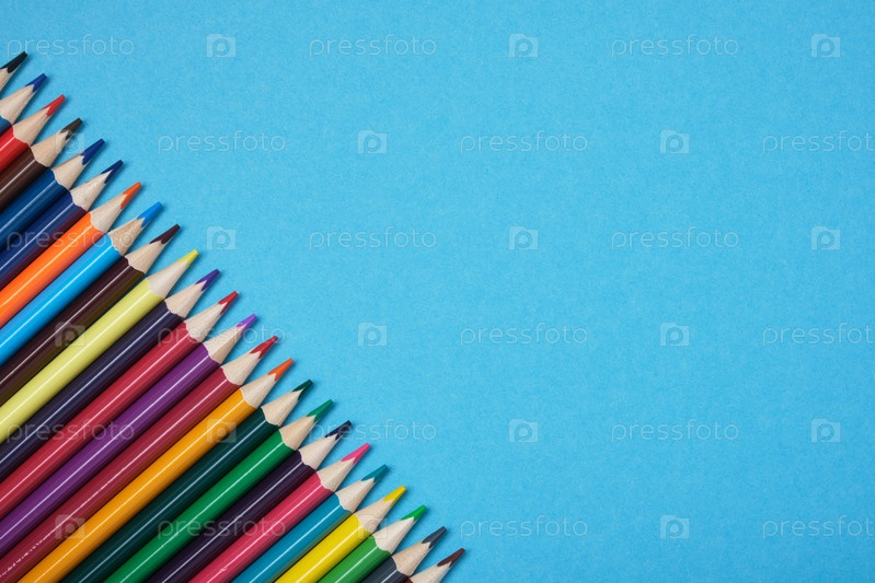 Цветные карандаши на синем фоне копией пространства