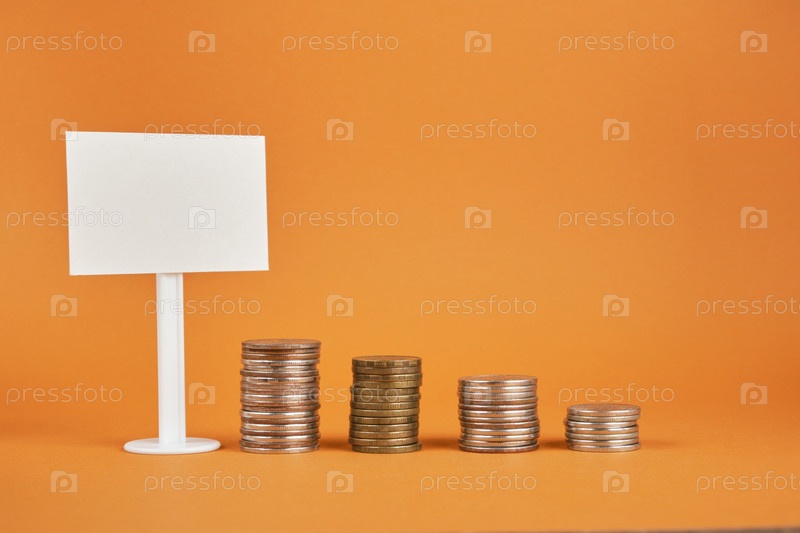 Белый пустой знак и несколько башен монет на коричневом фоне