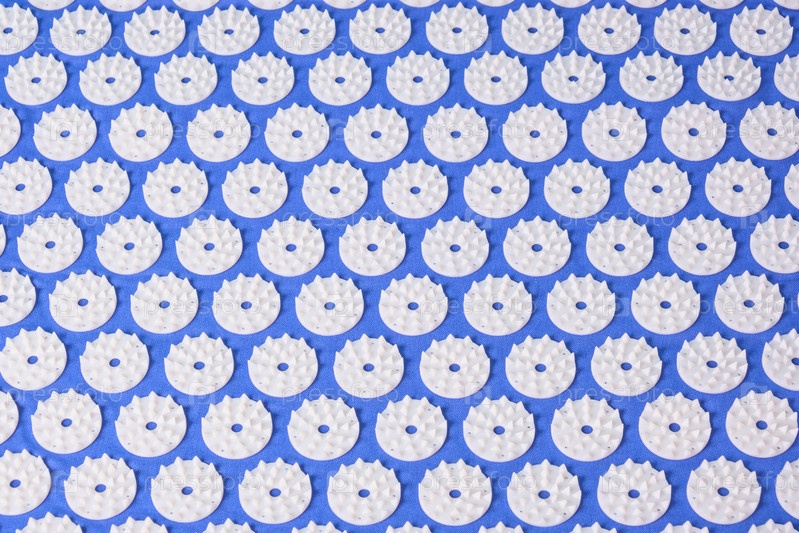 Синий массажный коврик для акупунктуры с белыми массажными насадками с острыми иглами