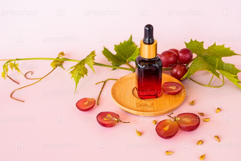 Косметический флакон из цветного стекла с пипеткой с органическим средством по уходу за кожей лица на основе виноградных косточек. натуральная косметика