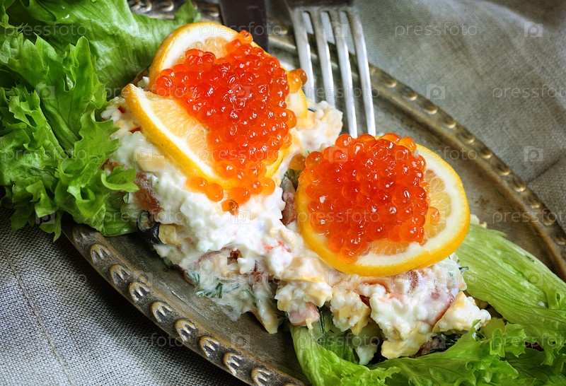 Блинчики с красной икрой и чаем. Масленица