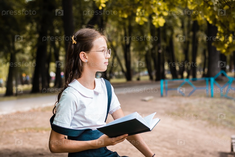 Студент в очках отвлекается от чтения книги и отводит взгляд в теплый день в парке