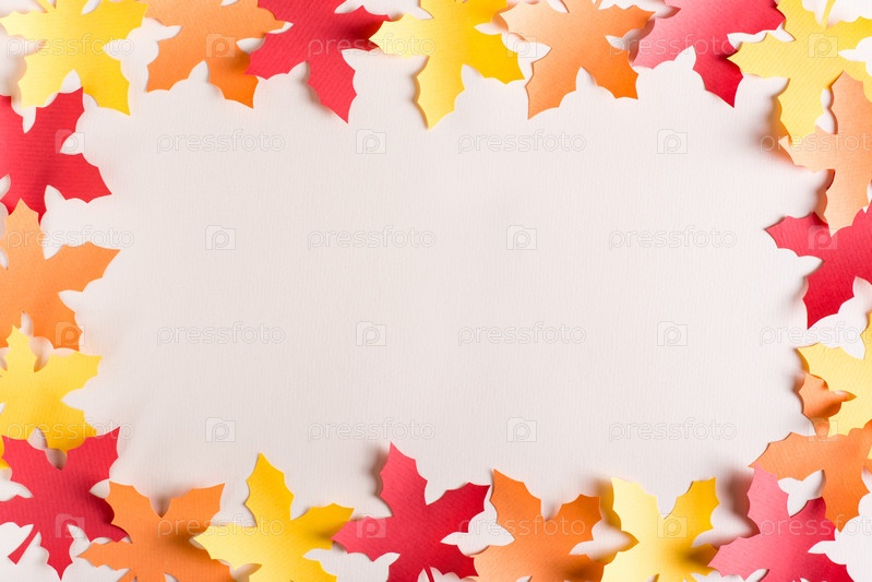 Рамка из разноцветных кленовых листьев, вырезанных из крафтовой бумаги. Осеннее украшение