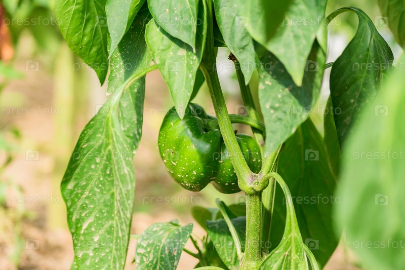 Органическая сельскохозяйственная еда, сельское хозяйство и концепция сбора урожая - зеленый болгарский перец в теплице