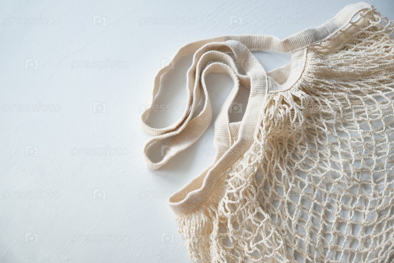 Сетчатые вязаные экологические сумки для покупок на светлом фоне, экологически чистый образ жизни, концепция нулевых отходов