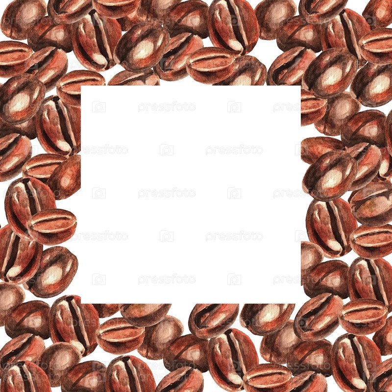 Кофейные зерна. Квадратная рама. Акварель