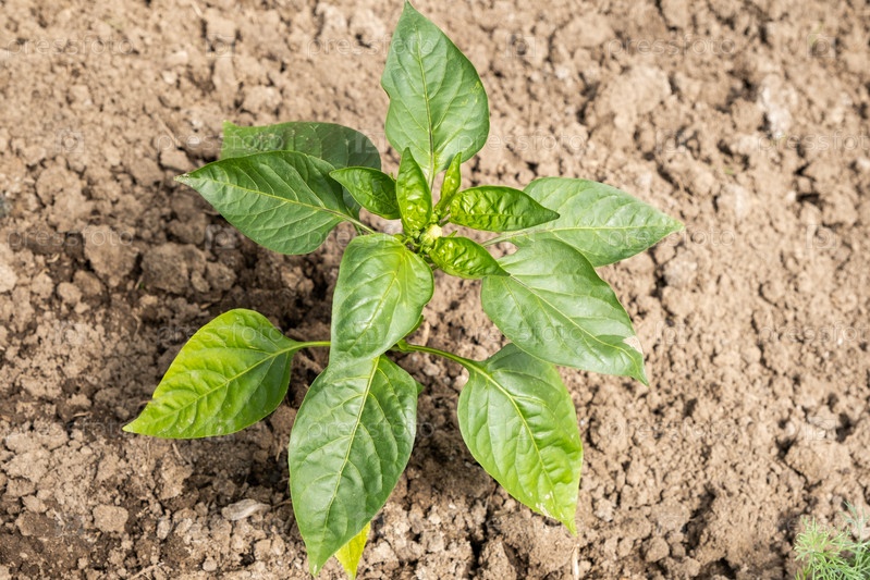Рассада перца в теплице, крупным планом