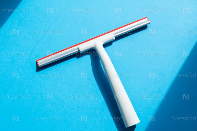 Резиновый скребок для мытья окон на синем фоне