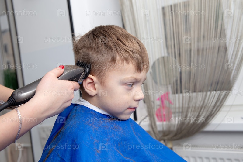 мальчик делает прическу в парикмахерской. Парикмахер делает прическу для мальчика
