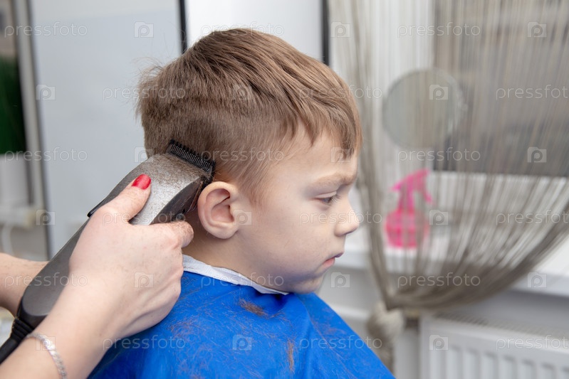 мальчик делает прическу в парикмахерской. Парикмахер делает прическу для мальчика