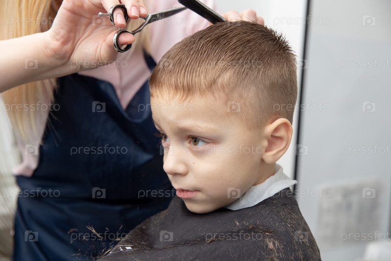 мальчик делает прическу в парикмахерской. Парикмахер делает прическу для мальчика