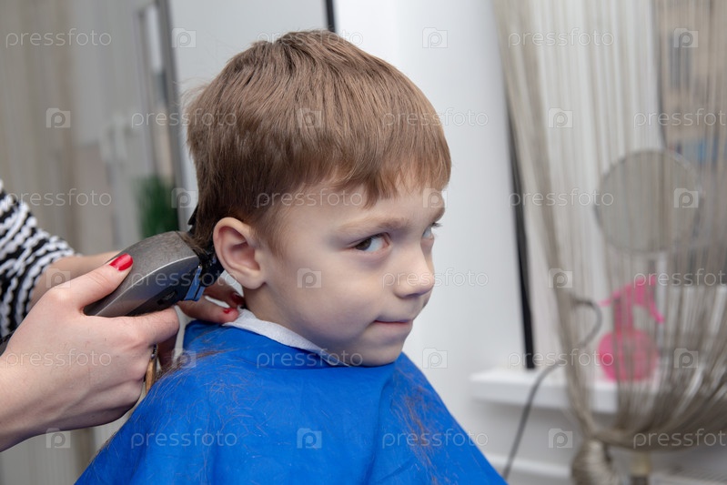 мальчик делает прическу в парикмахерской. Парикмахер делает прическу для мальчика