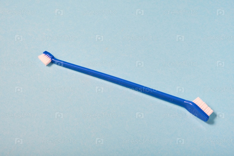 Специальная двусторонняя зубная щетка для домашних животных на синем фоне