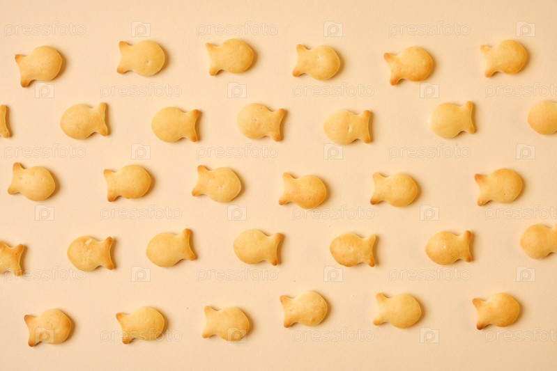 Рыбные крекеры на бежевом фоне вид сверху