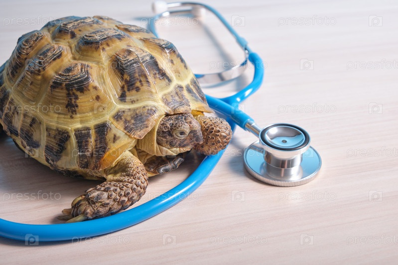 Ветеринар осматривает милую черепаху в клинике крупным планом