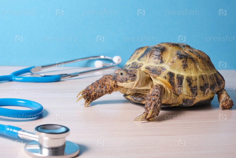Ветеринар осматривает милую черепаху в клинике крупным планом