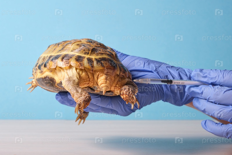 Ветеринар осматривает милую черепаху в клинике крупным планом