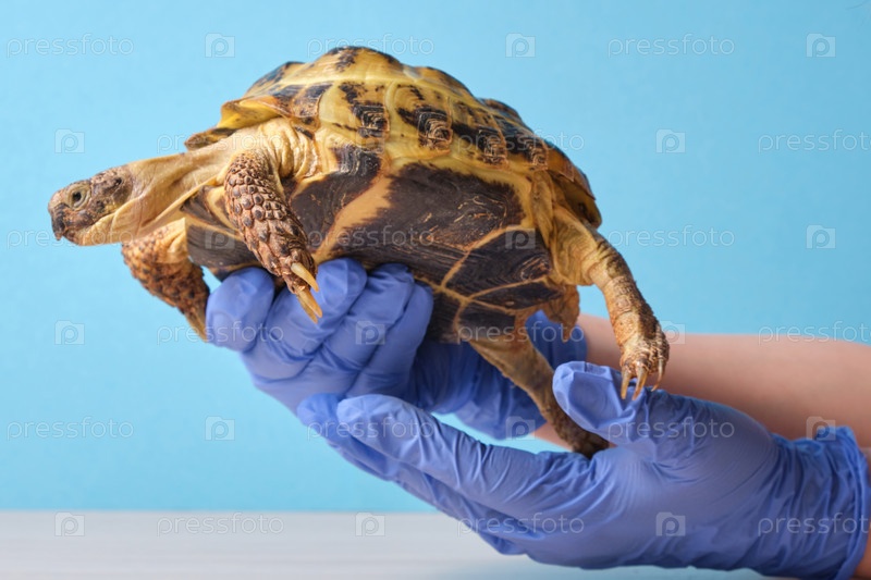 Ветеринар осматривает милую черепаху в клинике крупным планом