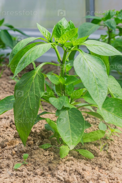 Растения болгарского перца в теплице