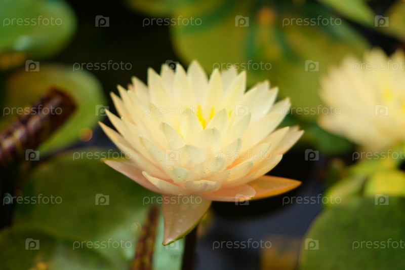 Красивая белая кувшинка, плавающая на поверхности воды
