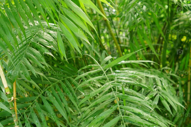 Крупный план пальмовых листьев в тропическом лесу, цветочный фон