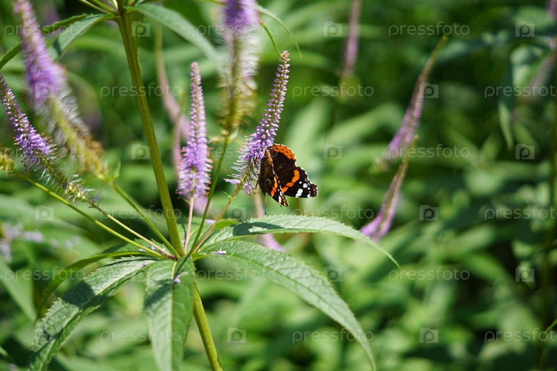 Veronicastrum virginicum, бабочка сидит на фиолетовом цвете в саду