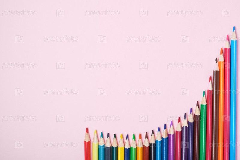 Цветные карандаши на розовом фоне вид сверху копией пространства