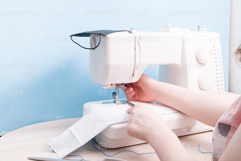 Процесс пошива защитной маски на швейной машине