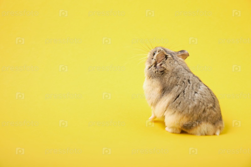 Милый джунгарский хомяк на желтом фоне