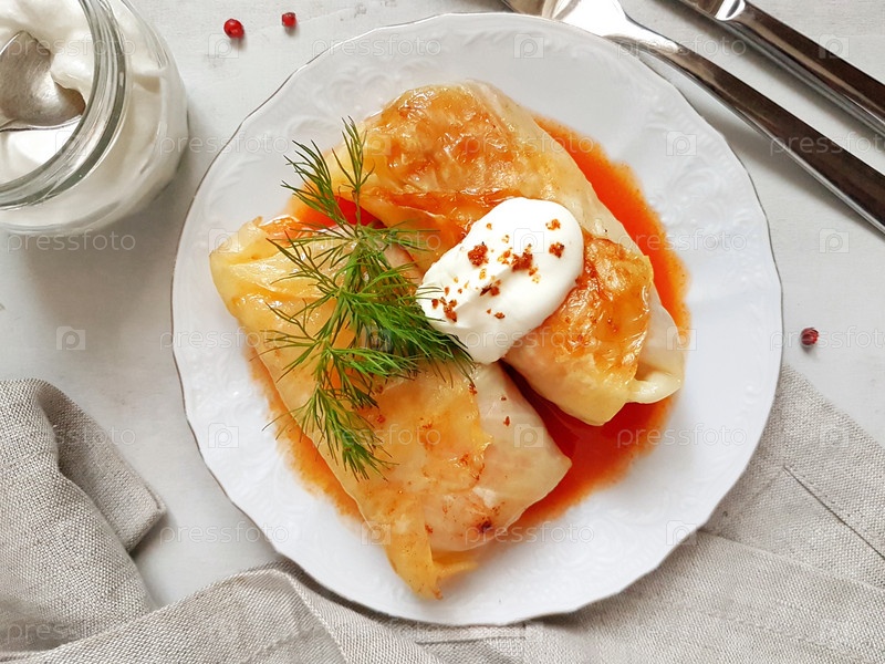 Голубцы с фаршем на сером фоне