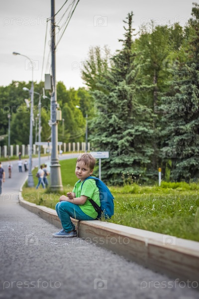 Портрет ребенка, мальчика на фоне городских пейзажей небоскребов и многоэтажек на пленэре. Дети, Путешествие. Образ жизни в городе. Центр, улицы