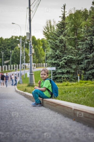 Портрет ребенка, мальчика на фоне городских пейзажей небоскребов и многоэтажек на пленэре. Дети, Путешествие. Образ жизни в городе. Центр, улицы