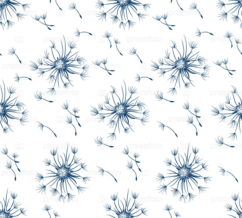 Бесшовный синий фон с полевым одуванчиком