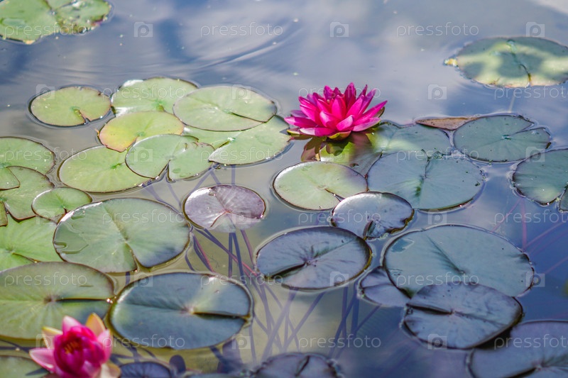 Красивая розовая кувшинка, плавающая на поверхности воды