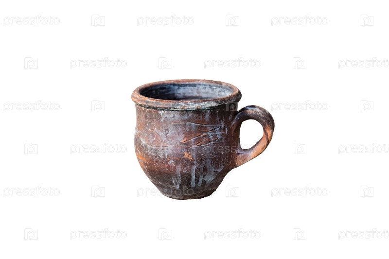 Старинная ржавая железная чашка на белом фоне