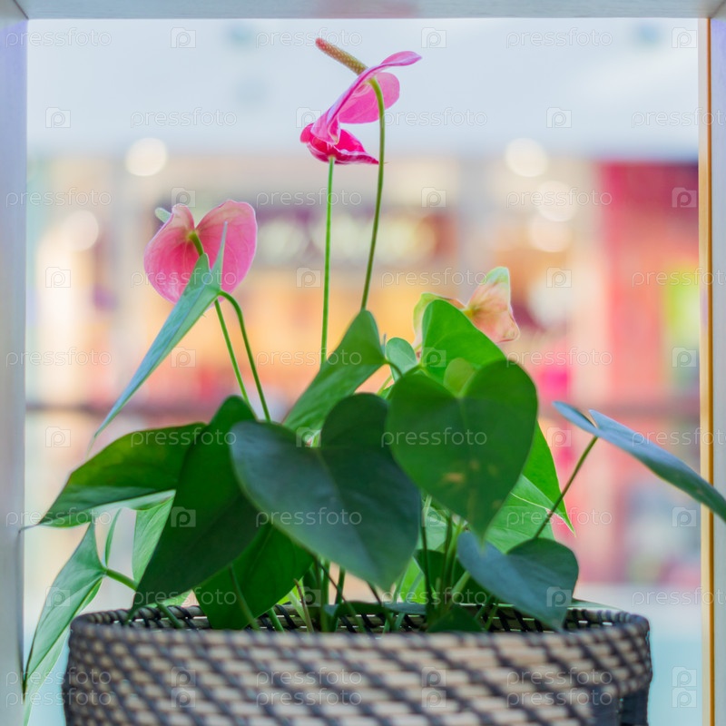 Цветущий цветок антуриума в горшке. дизайн интерьера