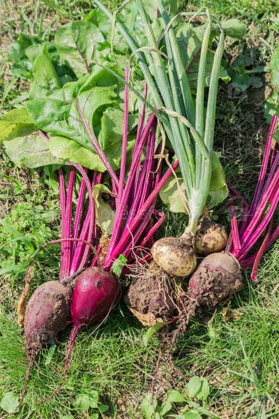 Свежие посевы органической свеклы на фоне поля. Натуральная растительная пища для сельского хозяйства