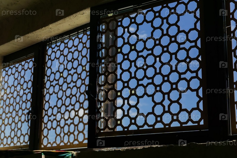 Окна с восточным орнаментом из металла, изнутри