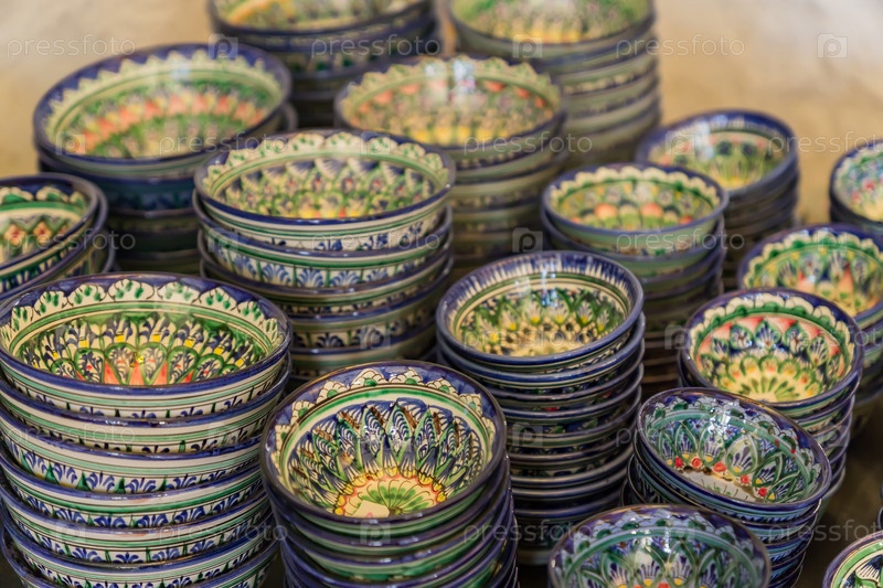 Традиционная узбекская керамическая посуда - тарелки и миски