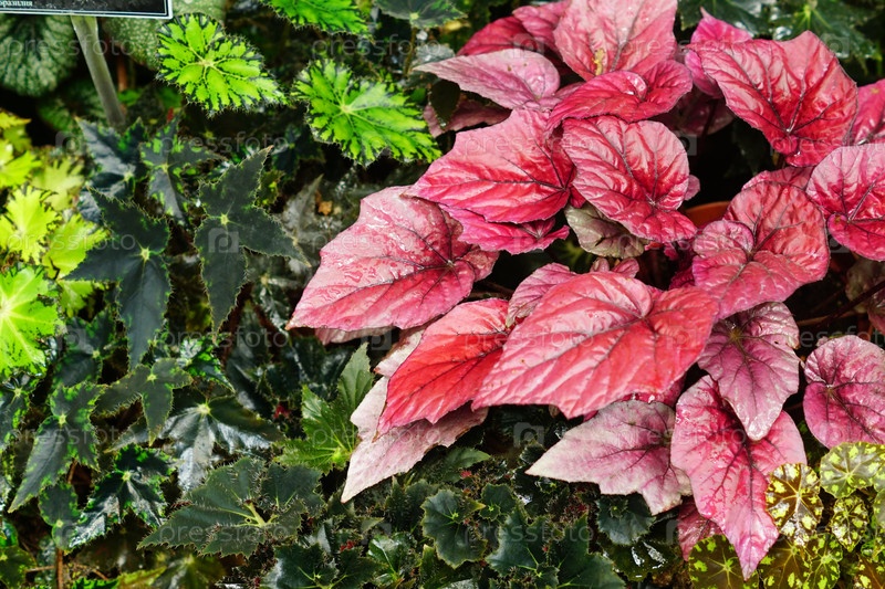 Вид сверху на различные виды цветов бегонии. Фон природы