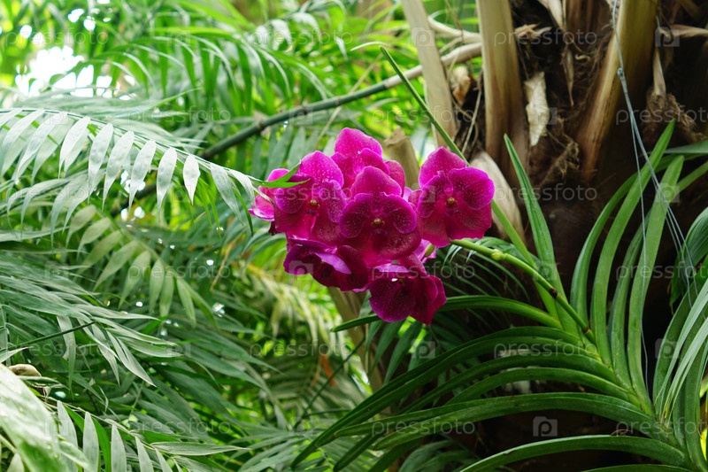 Красивая цветущая розовая орхидея ванда в тропическом саду