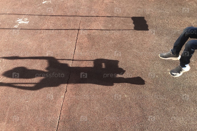 Тень качающегося мальчика на детской площадке