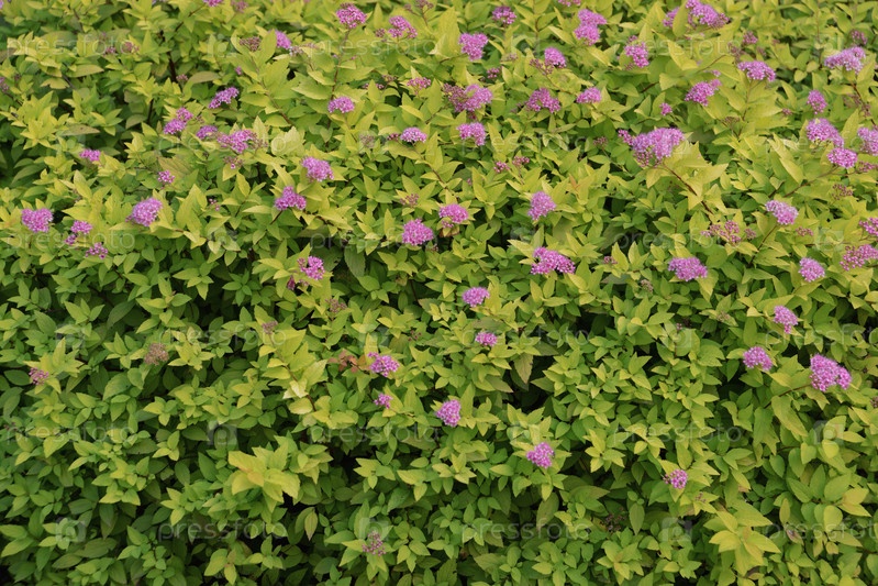 Spiraea japonica Goldmound цветы, естественный ботанический цветковый шаблон фона. Спирея Японская Золотая гора. Растительный цветочный фон