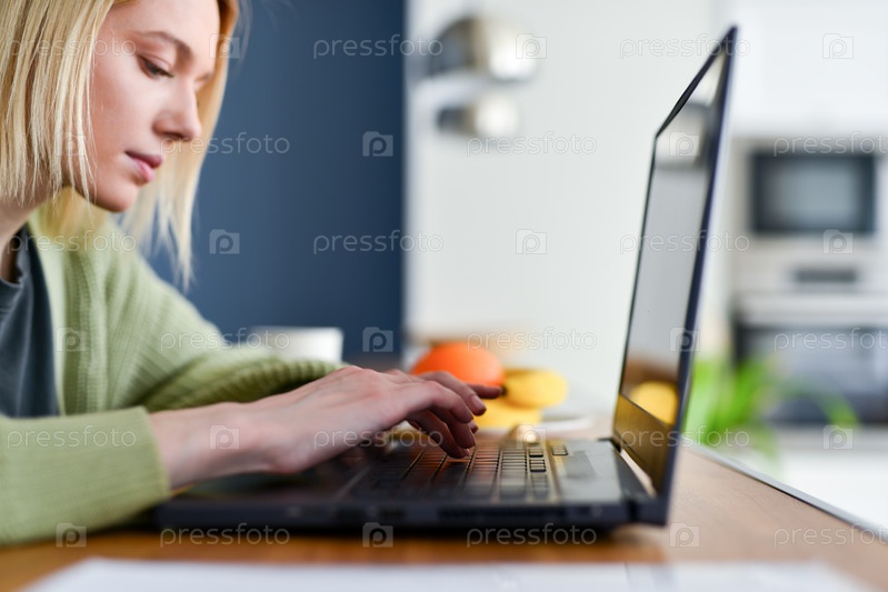 Женщина с ноутбуком дома