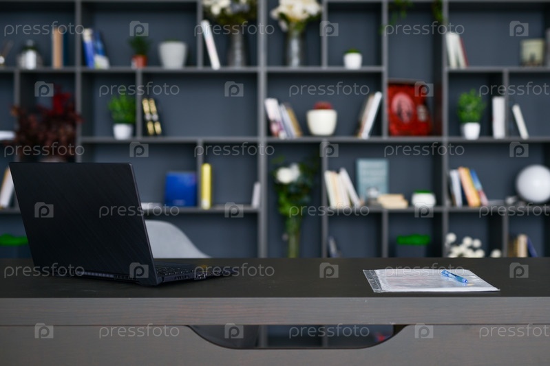 Стол с ноутбуком в интерьере домашнего офиса